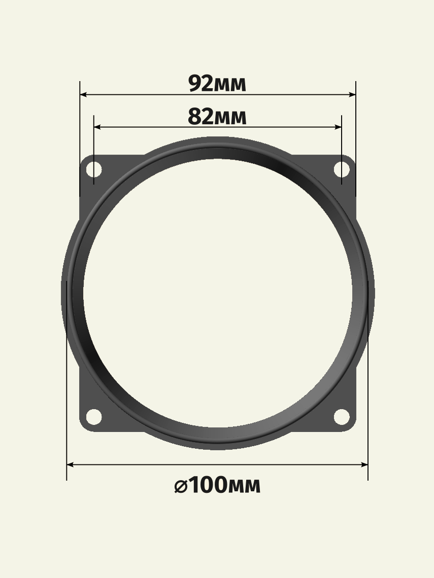 Адаптер для круглых вентиляционных каналов диаметром 100мм и вентиляторов 92мм / 12В, нашедших широкое распространение в компьютерной технике.