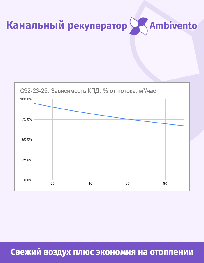 Производительность модели - 65м3/час, что позволяет создать комфортную среду в помещении площадью до 18м2, или для двух человек.